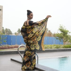 Tropical Jungle Hand-Painted Zari Tussar Silk Saree – Bold & Artistic Party Wear