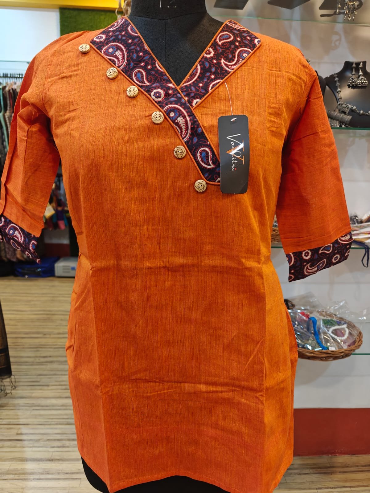 Pure South Cotton Short Kurti – 3/4 Sleeve