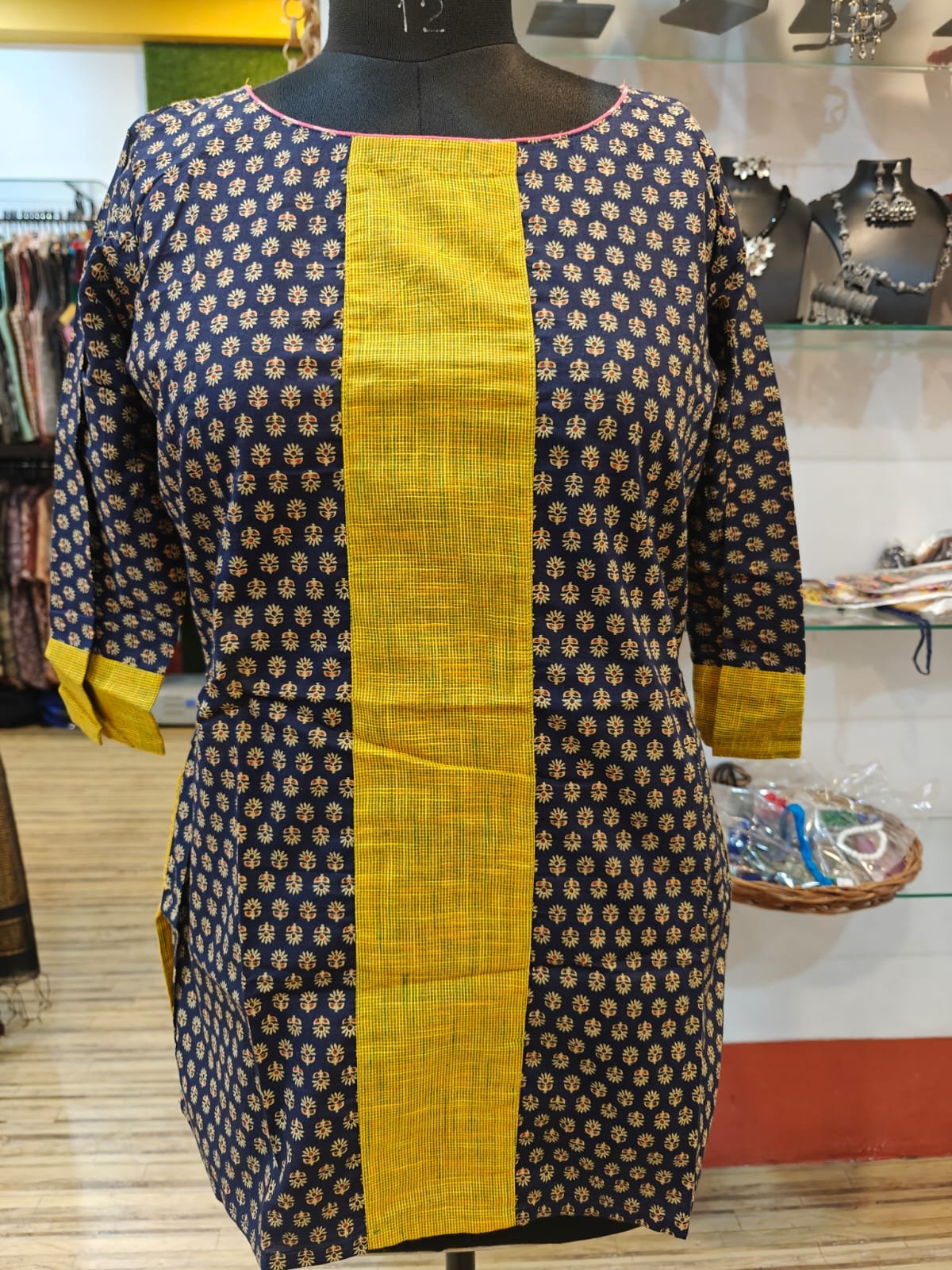 Step into comfort and effortless style with this pure cotton short kurti, designed for daily wear and suitable for all age groups. Featuring 3/4 sleeves and a relaxed fit, it pairs beautifully with pants, jeans, casual skirts, palazzos, and more—making it a versatile wardrobe staple.