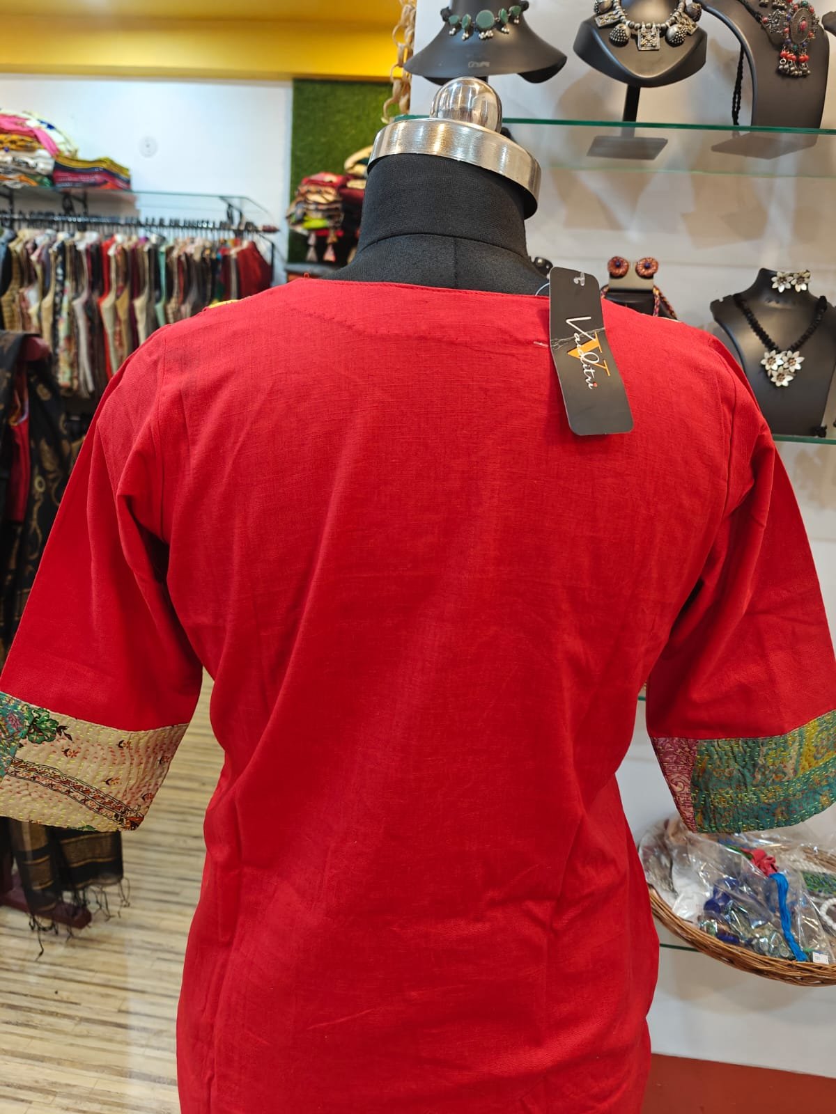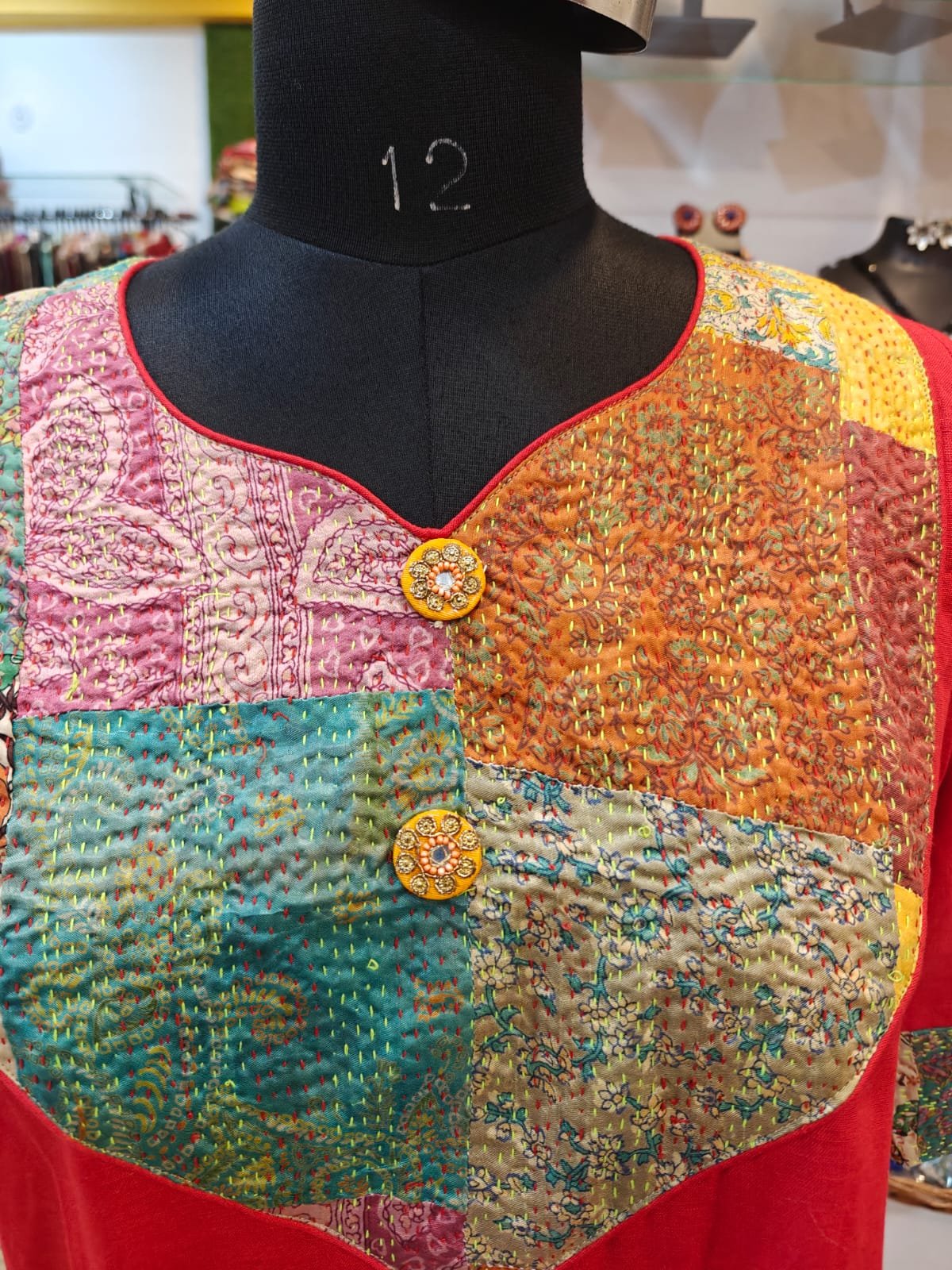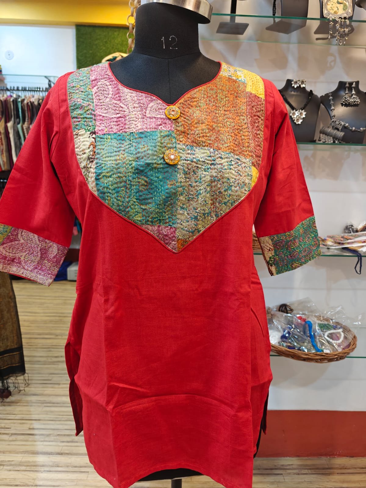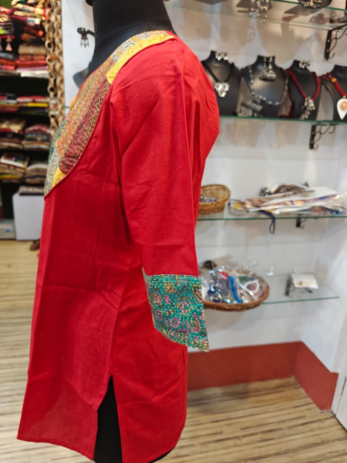 South Cotton & Semi Silk Kantha Short Kurti – 3/4 Sleeve