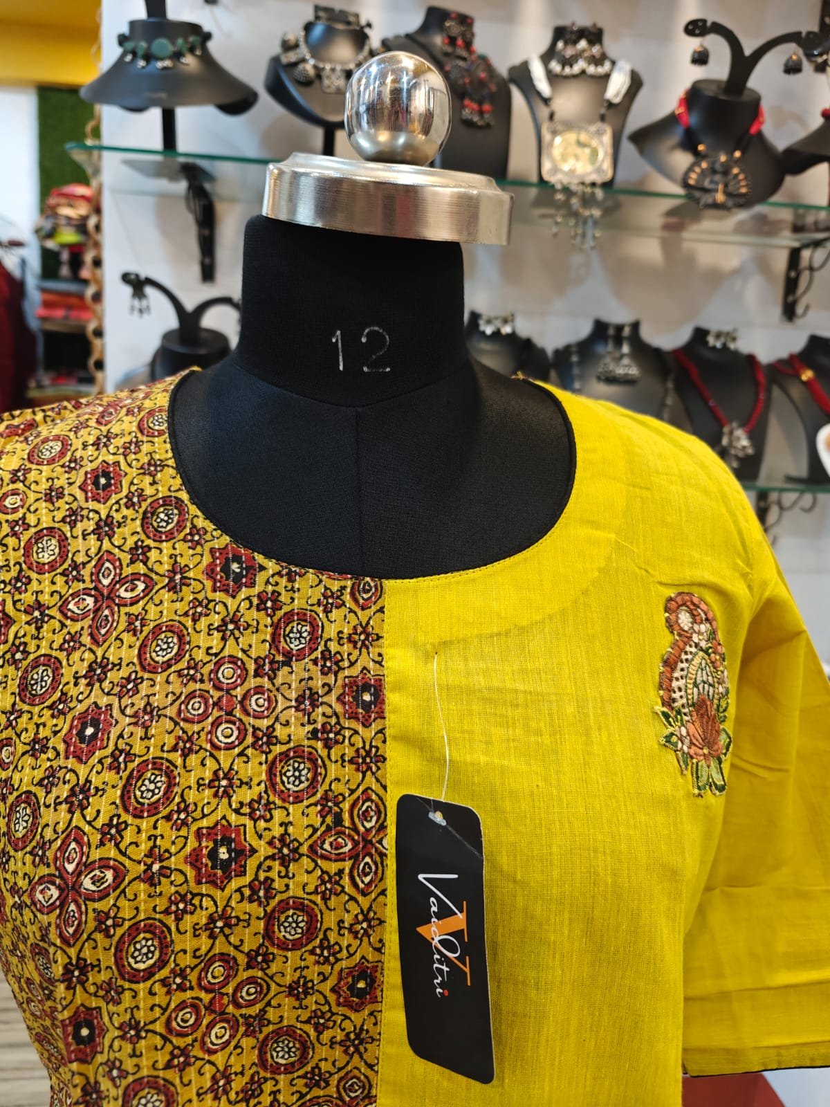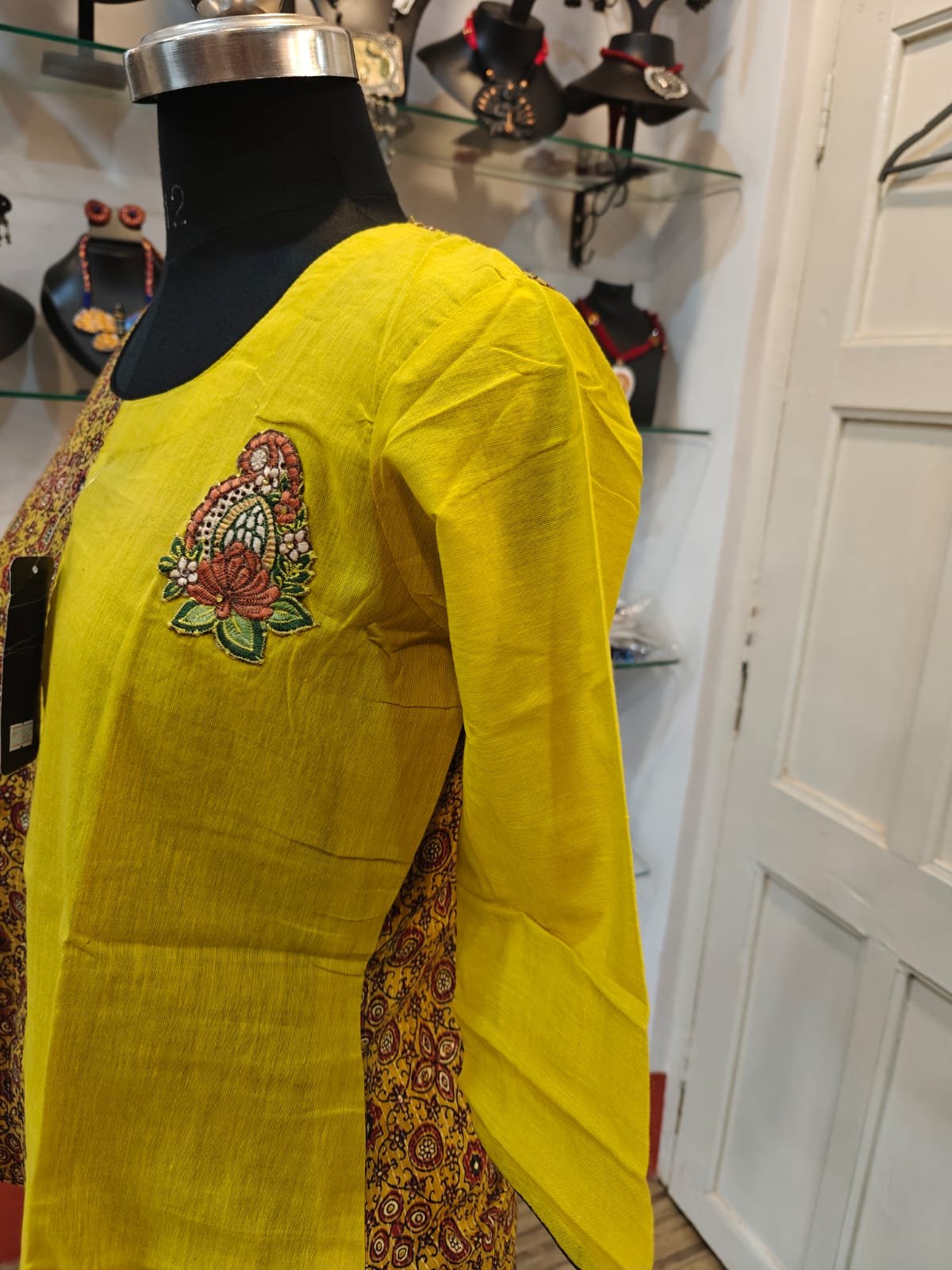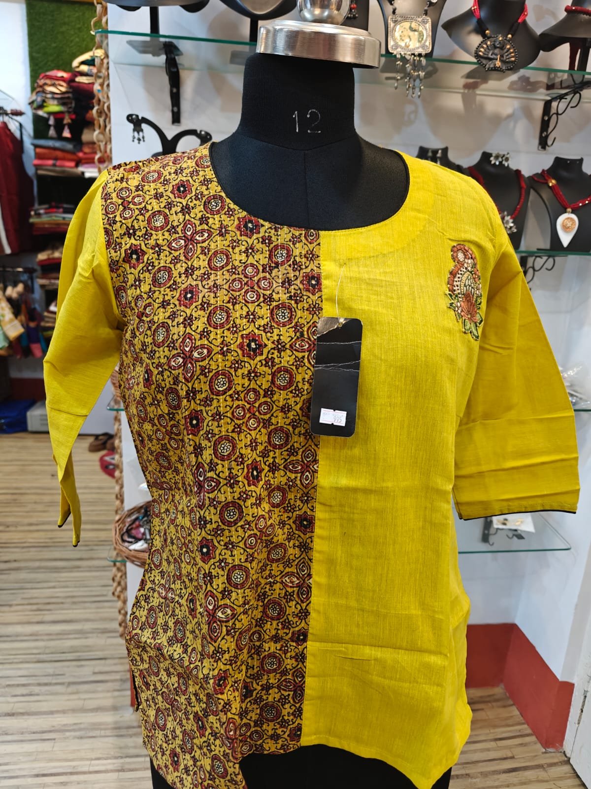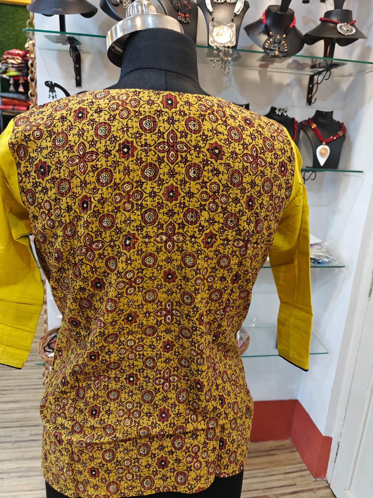 South Cotton & Ajrakh Cotton Short Kurti – 3/4 Sleeve