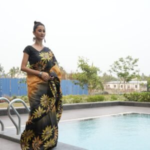 Step into a world of wearable art with this Acid Hand-Painted Bengal Tussar Silk Saree. Crafted from premium Bengal Tussar, known for its textured elegance and durability, this saree features hand-applied acid dye painting that adds a unique splash of culture and creativity.