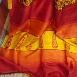 Elevate your style with our high-quality hand block printed sarees, crafted from pure Bishnupur Katan silk. Each piece reflects traditional artistry with modern elegance, making it a perfect choice for both formal and casual occasions.