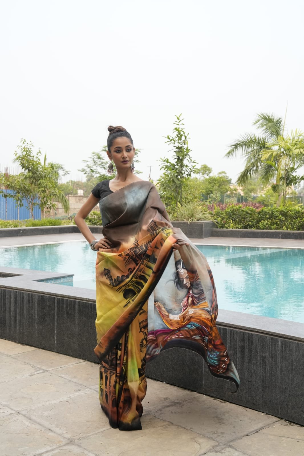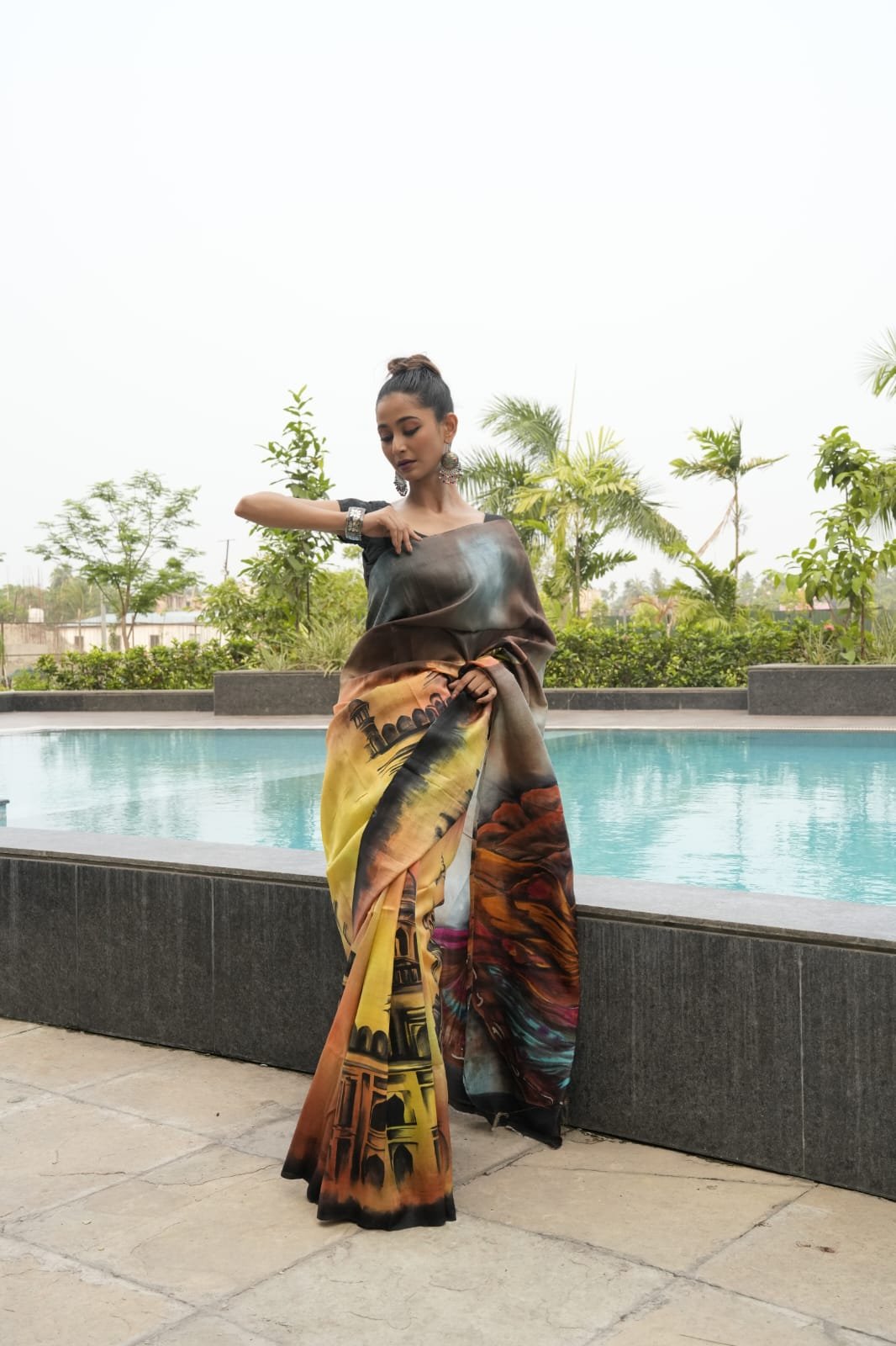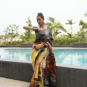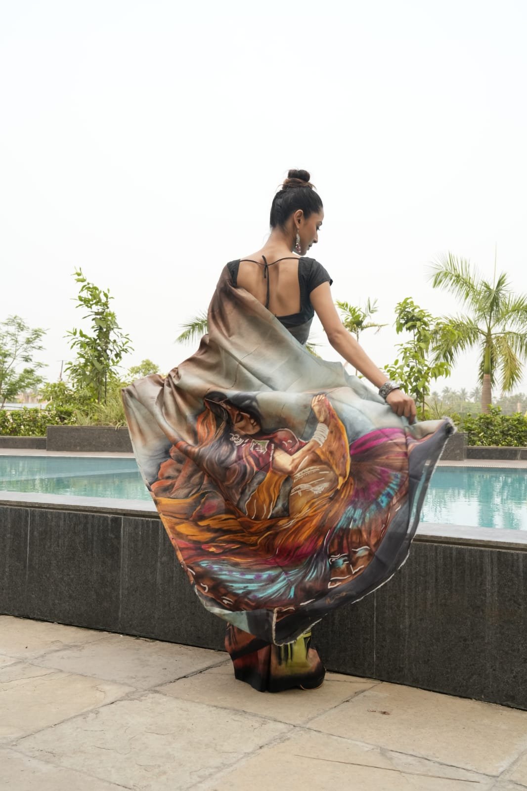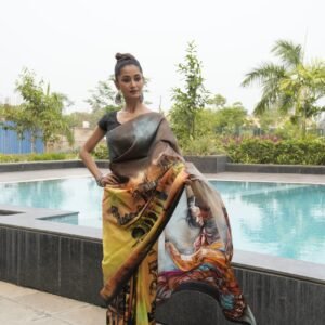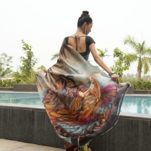 Ideal for parties, art exhibitions, or traditional occasions, this saree is a wearable tribute to Rajasthan’s dance heritage. Includes a matching unstitched blouse piece for a complete ethnic look.