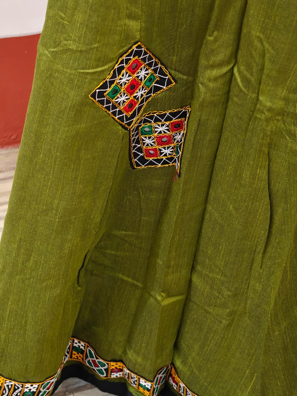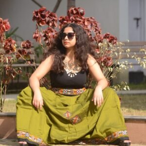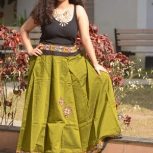 Step into effortless elegance with this Banzara-style skirt, featuring a rich single color and a unique handcrafted border. Designed to suit all age groups, it’s perfect for parties, festive occasions, or elegant gatherings. The adjustable side lace ensures a comfortable and flexible fit.