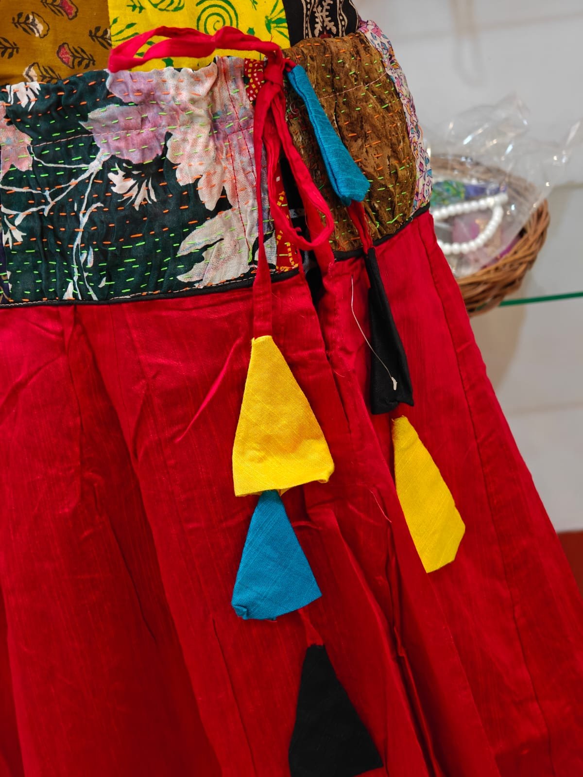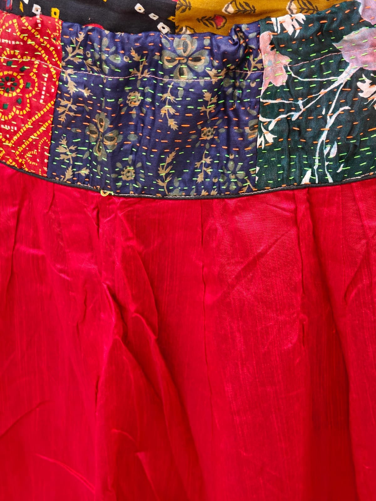 A very sophisticated Banzara-style skirt in a rich, single color — beautifully accented with a unique border. Perfect for party wear or festive occasions, this skirt flatters all age groups with its elegant flow and traditional charm. The free-size fit comes with an adjustable side lace for added comfort and flexibility.
