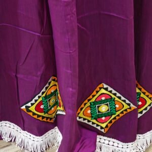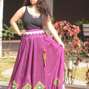 A very sophisticated Banzara-style skirt in a rich, single color—enhanced with a uniquely designed border that adds charm and elegance. Suitable for all age groups, this piece is ideal for festive gatherings or party wear. Crafted with care for comfort and style.