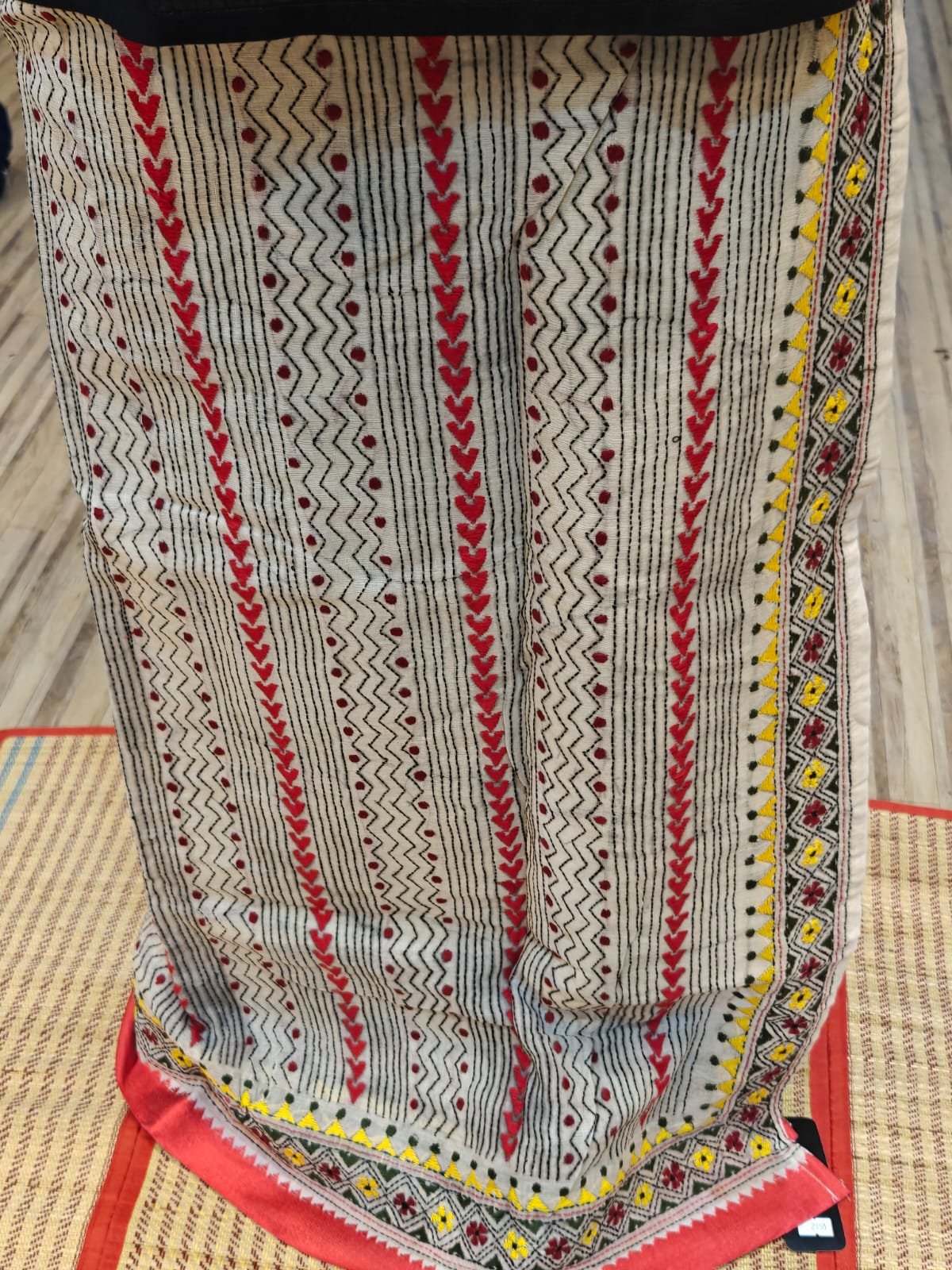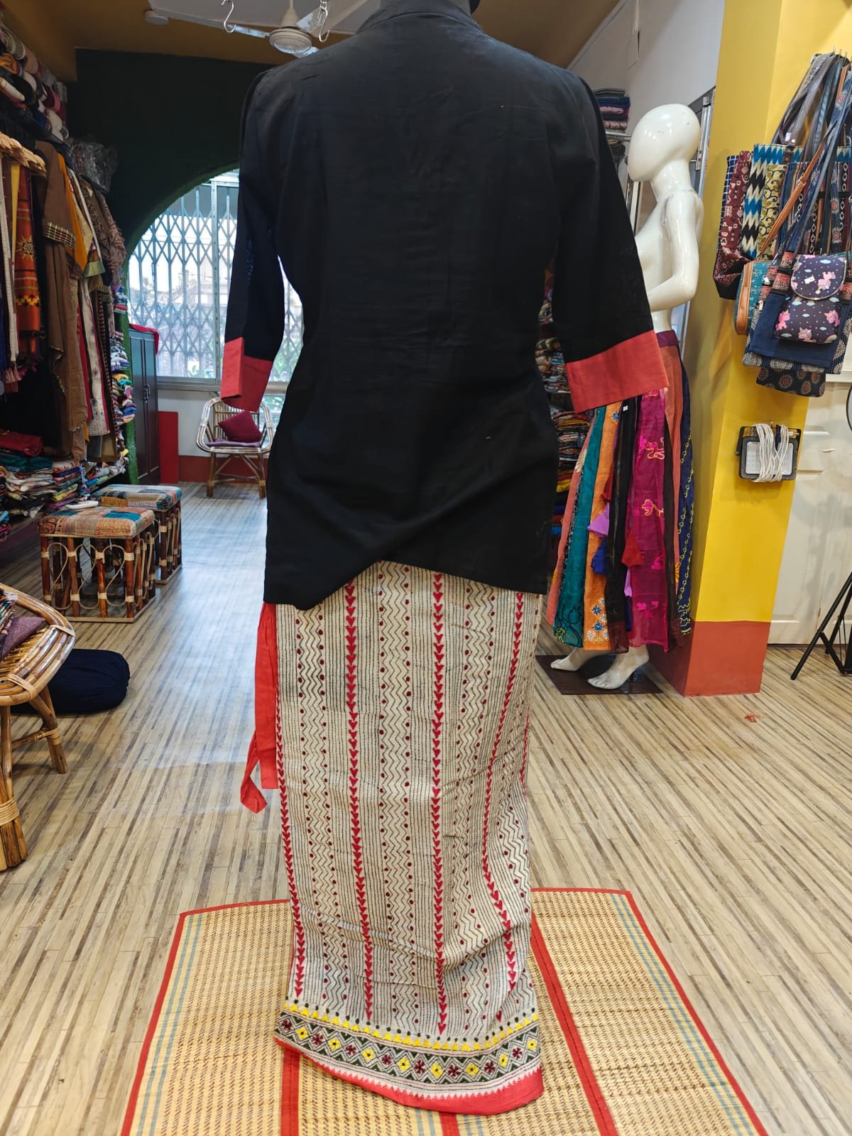 Design: Hand Kantha embroidery with a distinctive asymmetrical silhouette